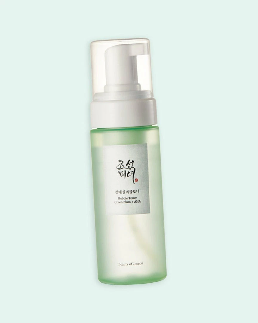 The key ingredient in Beauty of Joseon Bubble Toner: Green Plum + AHA is naturally derived AHA from green plum water and sugarcane extract. AHA glycolic acid removes dead skin cells to uncover brighter skin and encourages cell turnover which aids in fading scars and pigmentation. Consistent gentle exfoliation also helps minimize the appearance of fine lines and wrinkles over time.