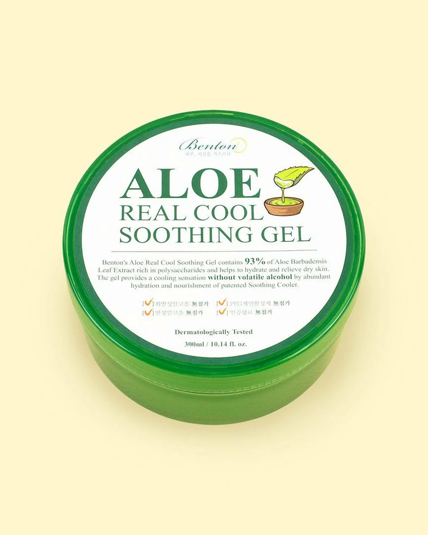 Give sunburned, dry, overheated, or sensitized skin fast, cooling relief with Benton Aloe Real Cool Soothing Gel thatโs packed with 93% aloe leaf extract. The formula also features a patented compound of anti-inflammatory and moisturizing botanical extracts that includes laminaria japonica extract, Japanese seaweed.