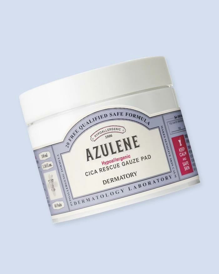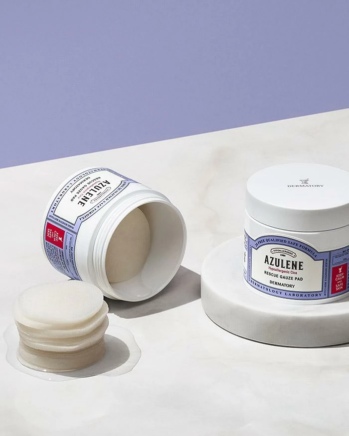 Dermatory Hypoallergenic Cica Rescue Gauze Pad skin care solutions are formulated with azulene and cica, which in conjunction help to treat wounds and also prevent future skin damage. Their calming and anti-inflammatory properties make these ingredients a great choice for sensitive skin types.