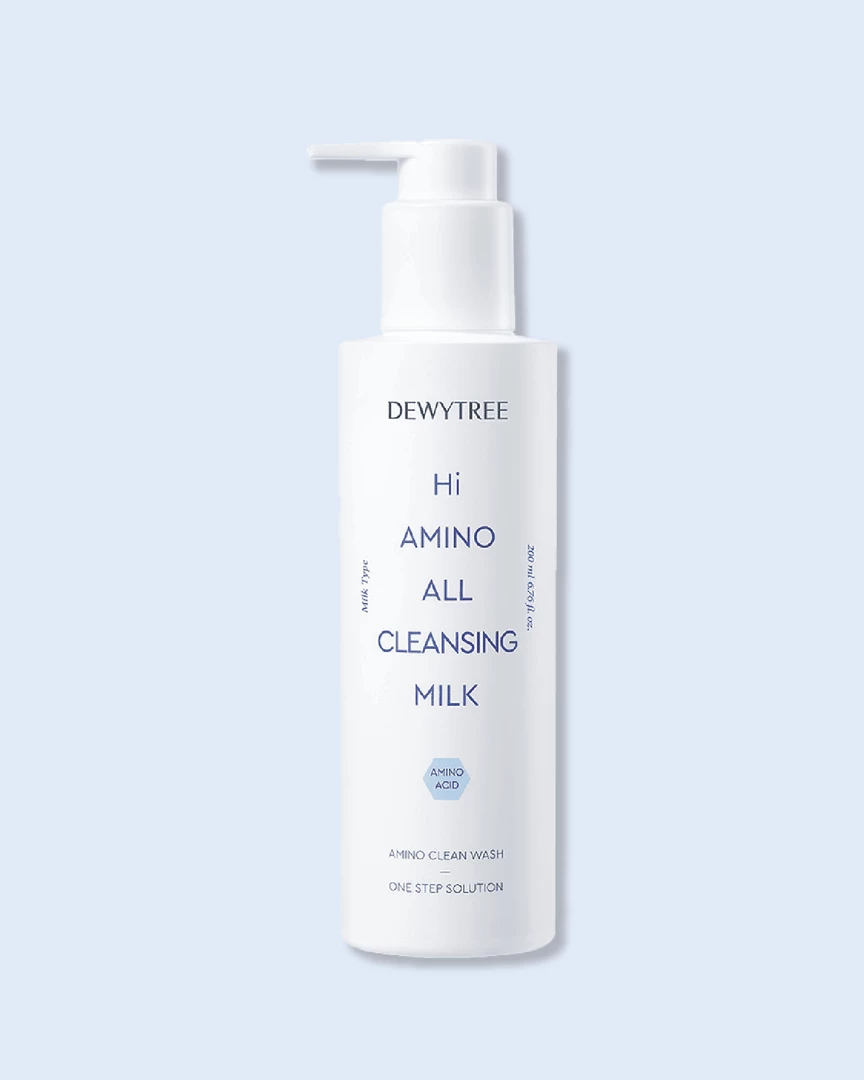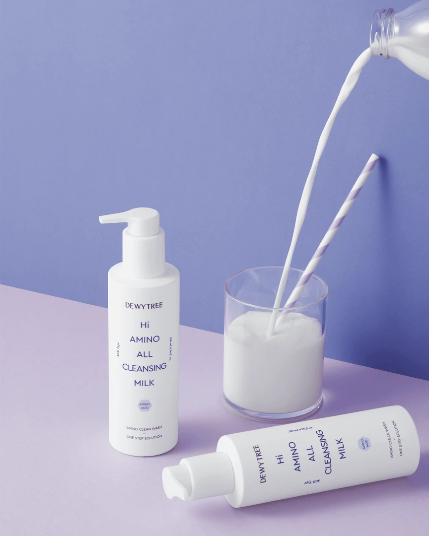 Dewytree Hi Amino All Cleansing Milk is hypoallergenic and formulated to be safe and effective for even the most sensitive skin. Your skin will drink this milky, nutrient-rich formula that sinks deep into the skin’s moisture barrier. While deeply hydrating, it clarifies the skin by removing makeup, impurities, and excessive sebum in pores, but leaves behind any irritants like rashes, redness, itching, and breakouts.
