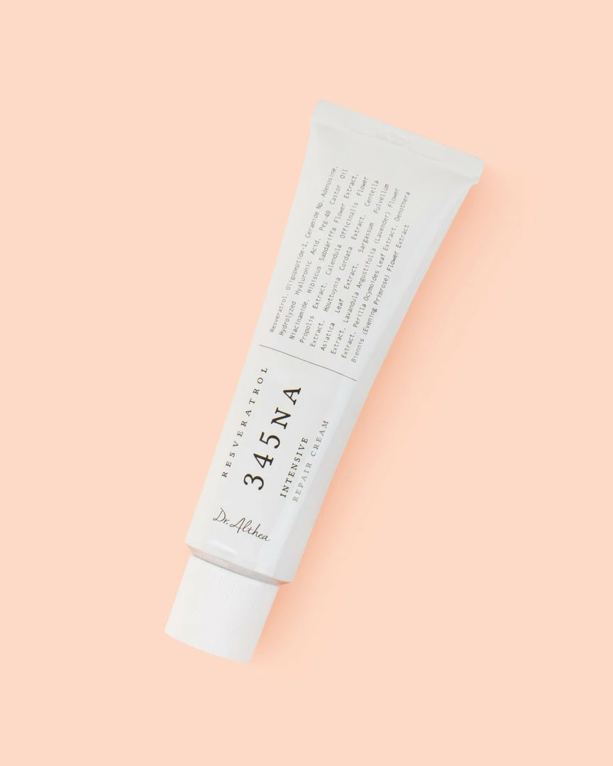 The star ingredient, resveratrol, is a powerful antioxidant that boosts cell turnover and improves skin elasticity. The Resveratrol 345NA_Intensive Repair Cream formula also contains wrinkle-smoothing adenosine and anti-inflammatory centella asiatica extract, as well as natural plant and fruit extracts to further soothe sensitized skin and inflamed breakouts.