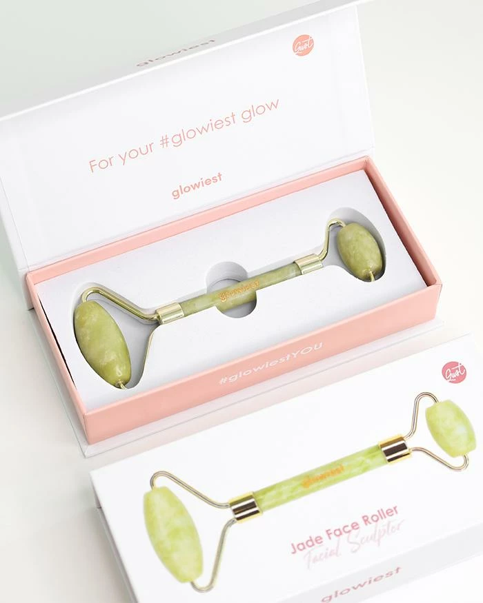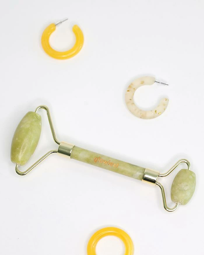 Use the Glowiest Jade Facial Roller in your next self care session. Jade is a stone with balancing properties to help it stay cool. This double-sided tool with a large end for broader surfaces and a smaller end for more delicate areas is best paired with your serums or oils.