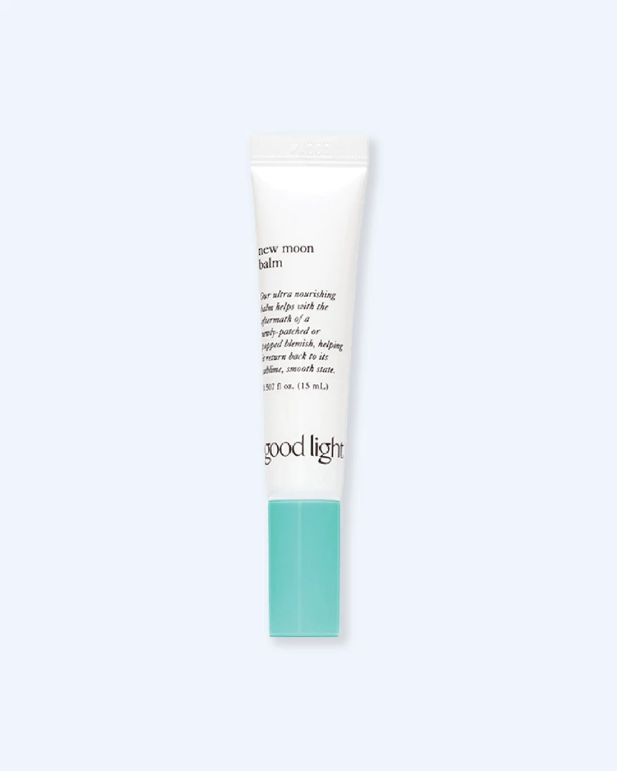 good lightβs new moon balm can be used in the aftermath of a blemish, dry patches, redness, damaged or over-sensitized skin.Β