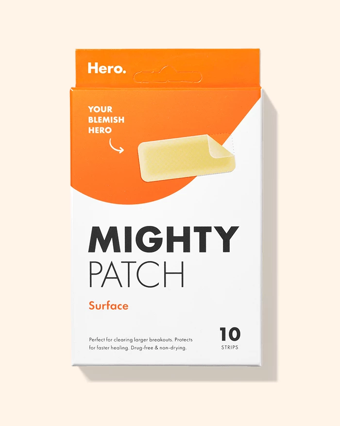 When an ordinary patch just won’t cut it, Mighty Patch Surface is the only jumbo-size hydrocolloid strip to cover XL breakout areas and visibly flatten big pimple clusters within hours. It has the original gunk-absorbing power of Mighty Patch with 100% hydrocolloid – plus 10x more coverage.