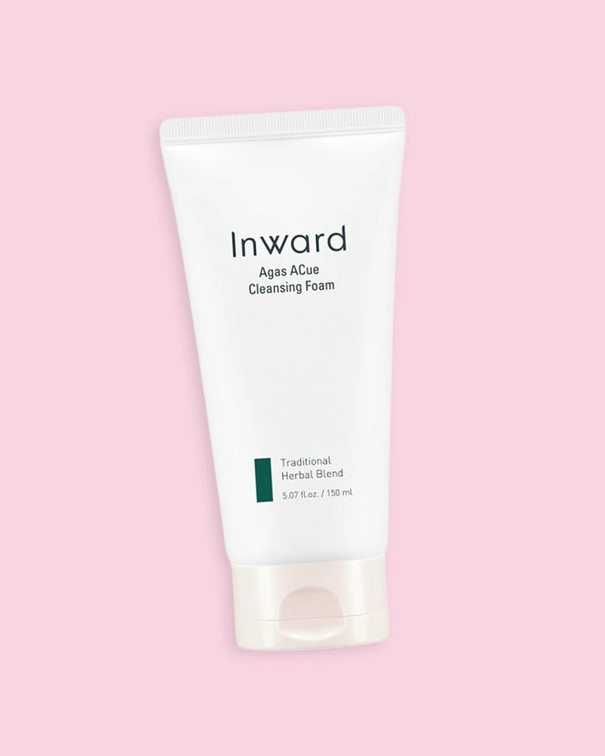 Inward Agas ACue Cleansing Foam (“agas” is short for agastache rugosa, or Korean mint) is a mildly acidic cleansing foam with a pH level to match your skin for gentle acne treatment.