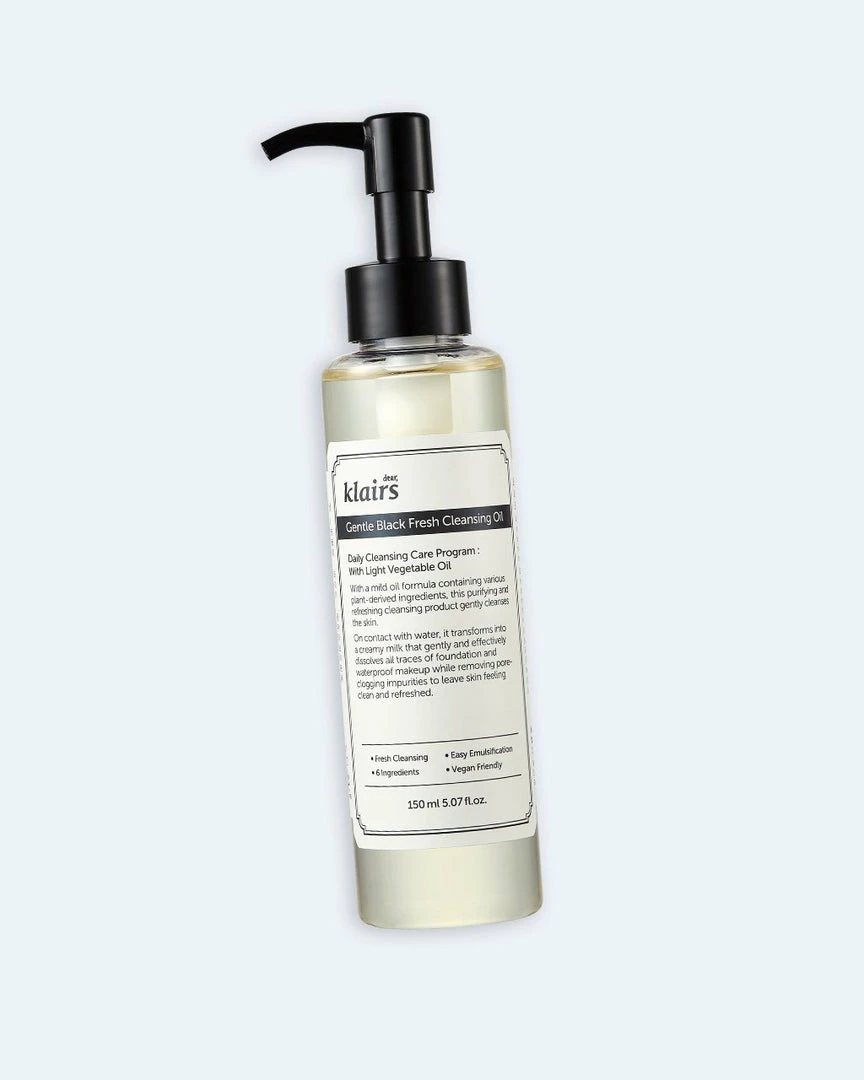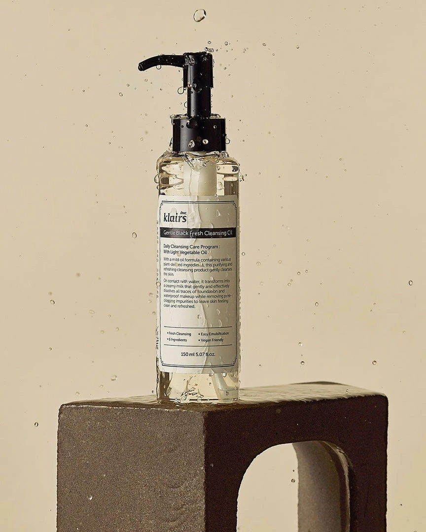 Gentle Black Fresh Cleansing Oil from Klairs is an everyday, fragrance-free oil cleanserย with a fresh, non-oily finish. Itโs lightweight yet effectively removes all makeup, oil, and residue while gently exfoliating dead skin cells and regulating sebum.ย