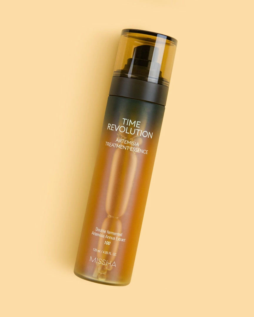 You can use the Missha Time Revolution Artemisia Treatment Essence mist as your essence step, over makeup to set it or throughout the day for a moisturizing or calming boost.