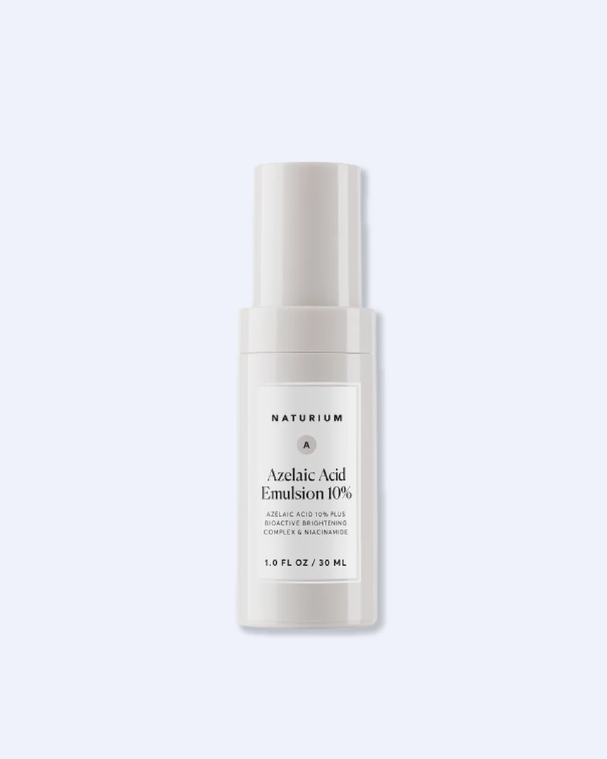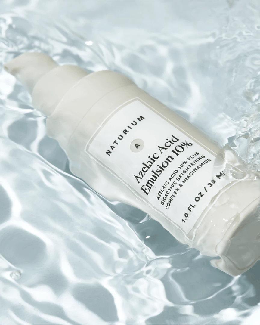 Naturium’s Azelaic Acid Emulsion 10% contains a high concentration of pure azelaic acid, a bioactive brightening complex, bio-retinol and niacinamide to help calm visible redness while minimizing the appearance of uneven tone and texture.