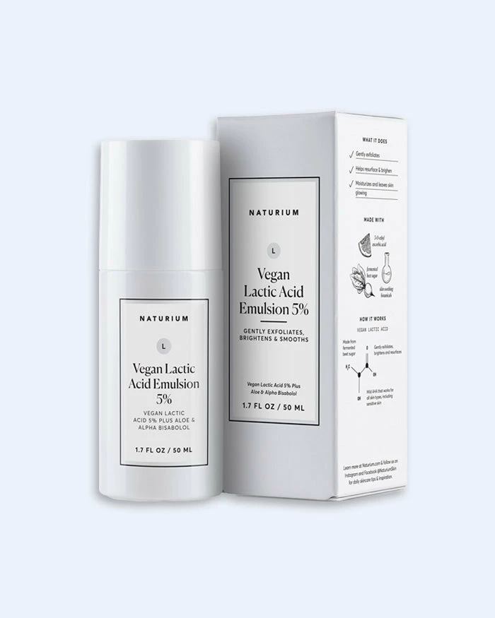 Target the look of dark spots and soothe your skin with this nourishing lactic emulsion for a bright and glowing complexion. The lactic acid in Naturium Vegan Lactic Acid Emulsion 5% is made by fermentation, aloe, and bisabolol that work to gently exfoliate the skin.