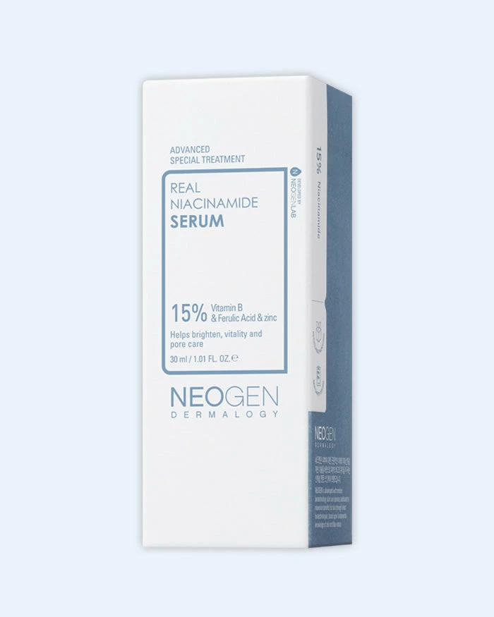 Neogen Real Niacinamide 15% Serum aids in a clear complexion and radiant and revitalized skin. This high concentration of niacinamide helps prevent blemishes and hyperpigmentation from appearing on the surface of the skin, while boosting the skin’s glow. This product has a pH level of 8.00±1.00.