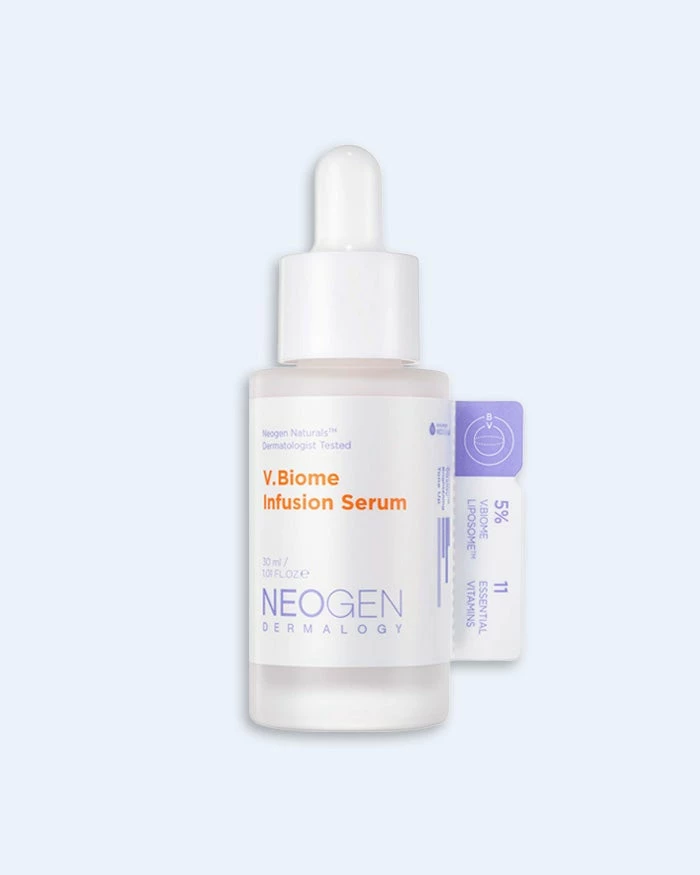 Get a facial at home with the V.Biome Infusion Serum from Neogen! This high-performance antioxidant vitamin serum contains 5% V-Biome Liposomeโข and over 10% of vitamins – providing a visible glow, brightening effects, and a boost in skin elasticity.