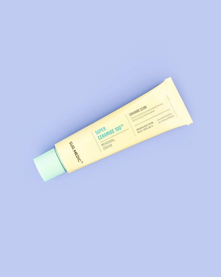 Dry and aging skin is no match forΒ SUR.MEDIC+ Super Ceramide 100β’ Renewal Cream. Five types of ceramides work with hyaluronic acid to moisturize and restore the skin barrier, while botanical extracts like centella asiatica and green tea leaf soothe. The result is a glowing, healthy and youthful complexion.