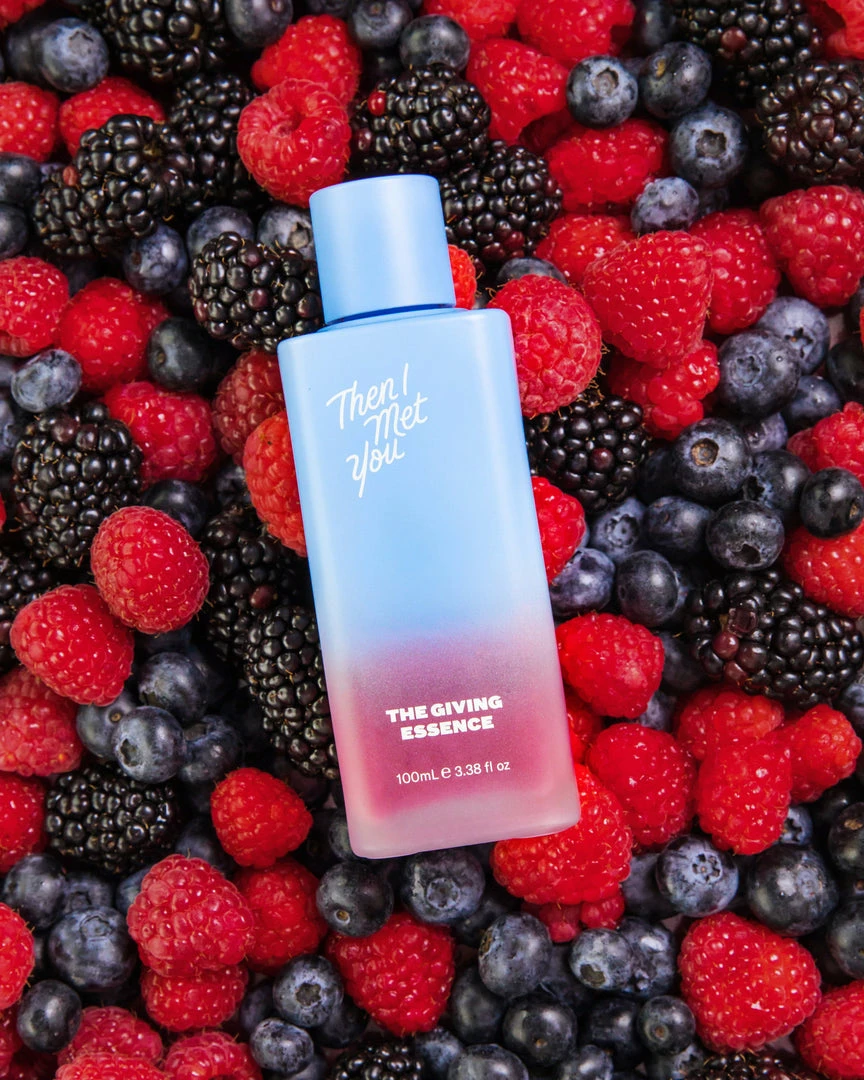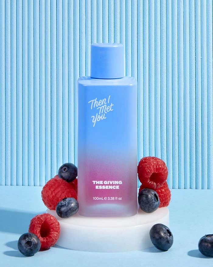 The carefully crafted Then I Met You essence is formulated with 5% niacinamide – the optimal concentration for effective, brightening results. It’s also composed of over 80% naturally fermented ingredients such as galactomyces ferment filtrate and saccharomyces ferment filtrate that have proven skin care benefits, including reducing the appearance of pores, blackheads and sebum. Deeply hydrate skin with polyglutamic acid, an ingredient that holds 4x more moisture than hyaluronic acid. The Giving Essence also contains ellagic acid, a naturally-found compound that excels at brightening and protects against UV rays.ย